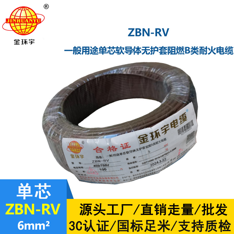 金環(huán)宇電線電纜 B類阻燃電線ZBN-RV 6平方 耐火rv 6平方電線
